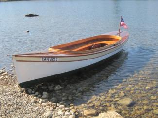 I built this 18′ Palmer fantail launch to plans I obtained from Mystic Seaport Museum. The original boat was built around 1910 and had a Palmer gas inboard engine. I adapted the plans for modern strip plank construction and used western red cedar for planking, fiberglassed inside and out. Decks and seating are of Khaya Mahogany and all trim is American Black Cherry and oak. It is propelled by the components of an 80 lb. thrust trolling motor. I use the boat on the mountain lakes of Vermont.
