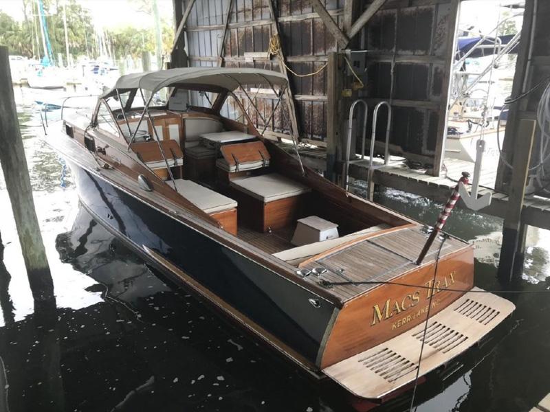 MACS TRAX is a classic 30-foot Forest Johnson Prowler built in 1960. She has been recently restored and meticulously maintained by her current owner. Features include varnished mahogany carvel planked hull, beautiful paint and varnish throughout, and twin Mercruiser 5.7 liter engines. Varnished Mahogany Carvel Planked Hull