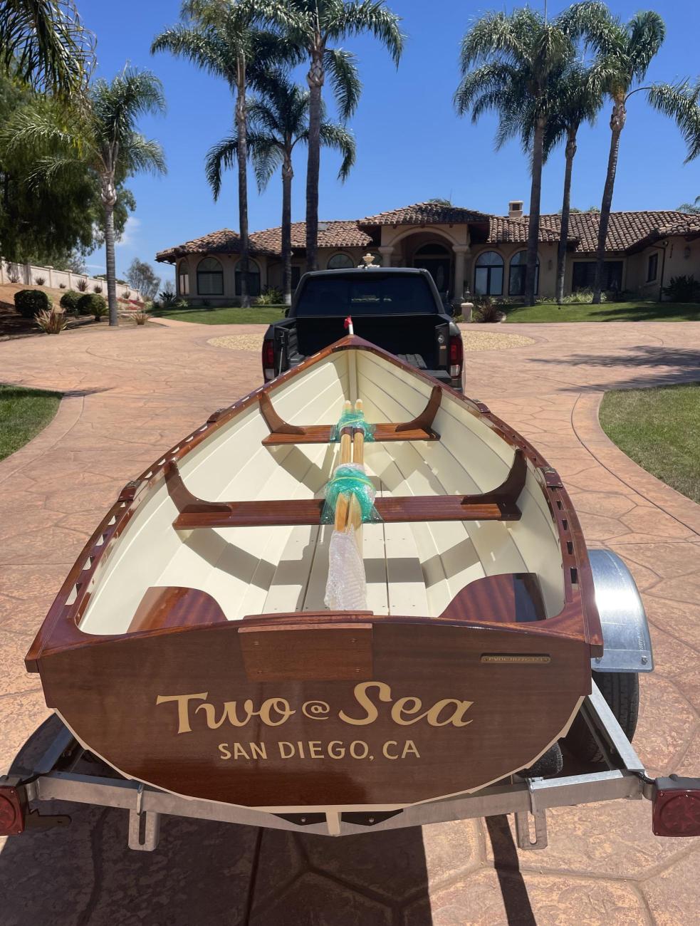 Built by Cottrell Boat Builders in Maine and shipped to San Diego, CA. Original design extended one foot to 11' and a few inches taller. Excellent stability and rowing boat. 7.5' Shaw and Tenney oars with cover. Pacific trailer with 5,000 capacity (over built) cost $2,400. Garage kept, used one season. Selling due to health issues. $18,000 invested including transportation. Sell for $10,500.