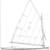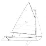 Lapstrake-plywood daysailer with a shapely wineglass transom, unstayed sprit rig, and wide, flat, keels for easy trailering.