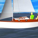 This tri was built by the ultimate wooden boat builder, Eef, a legend now 81 years has built several wooden multihulls is very happy with his new creation.