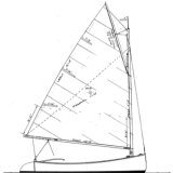 Beamy yet fine-lined rowing/sailing boat designed for lightweight construction.