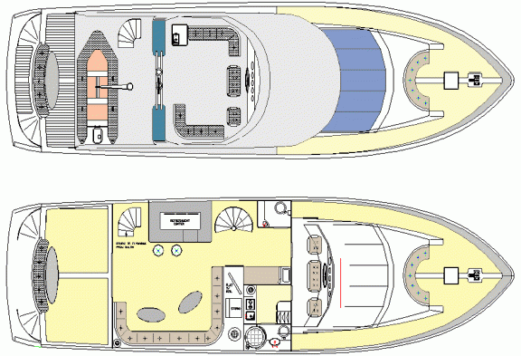 A planing version is available to those who are looking for speeds in excess of 16 knots. In the planing version, twin 1050 hp engines should be capable of driving this boat to speeds in excess of 30 kts.