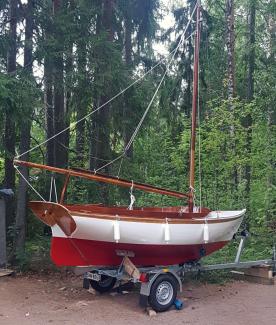 Jaakko Toiviainen found in fall 2021 a neglegted Haven 12,5 bare hull in the corner of the boat hall where he kept his sailing yacht. It appeared that the hull had been built by a professional boatbuilder some twenty years ago, but for some reason never completed. She was owned by the boatyard, but they had no plans for her. Jaakko bought the hull, ordered drawings from WoodenBoat Store, transported the hull to summer cottage by a big lake and started completing her there. The project was completed in June 2024 and the yacht launched on June 28. She got name OPAS, which is formed from the first letters of the names of Jaakko's four grandchildren, who all were born during the project: Otso, Pauli, Antto, Sofia. OPAS in Finnish means “Guide” and the idea is that she will guide the grandchildren in the secrets of sailing a gaff-rig yacht and guide them to interesting destinations of the lake.