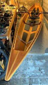 Single sliding seat open water shell, self-built, plans adapted to stitch and glue construction and to fit the Big River rowing rig from Fyne Boat Kits in the UK.