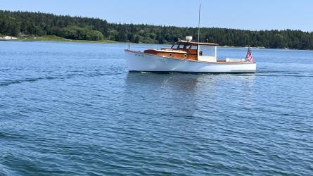 Beautiful Swiss Staempfli Sculling Single from 1976. Classic lightweight rowing / racing shell in Spanish Cedar in near perfect original condition. As published in The WoodenBoat Magazine, #134 January/February 1997 in an article “The Call of Wooden Racing Shells”, by Daniel J Boyne. Not in the water since 1979. Two pair of original / traditional Staempfli hollow wooden oars with original black anodized riggers and attendant aluminum metal fittings. Complete with original Addidas rowing shoes and custom roof top car carrier frame. Drive away from Newton, MA. Photos Available. $5,000.