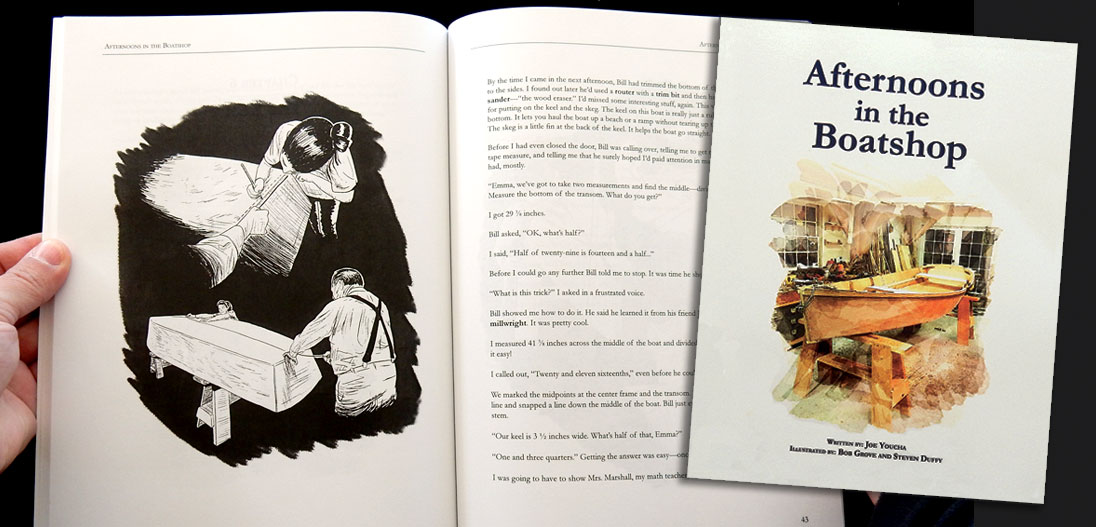 The place to start is with a story. Afternoons in the Boatshop is told by Emma, a seventh-grader who has been given a choice: Either stay after school for extra help with her teacher to improve her math grade or help her family friend, Bill, build a boat. “Who needs all those fractions and geometry?” says Emma. “Boring, and besides, where would you use that stuff anyway?” Emma chooses boatbuilding, thinking that anything has got to be better than school. She finds through boatbuilding not only that all those formerly tedious classroom lessons miraculously turn into fun and useful tools, but she also finds the pride and confidence of craftsmanship.